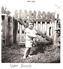 Mark and Greg were doing their first bit of horseback riding at their Grandmother Bounds house. They were about 12 years old. Greg was riding in the saddle and Mark was riding behind the saddle.